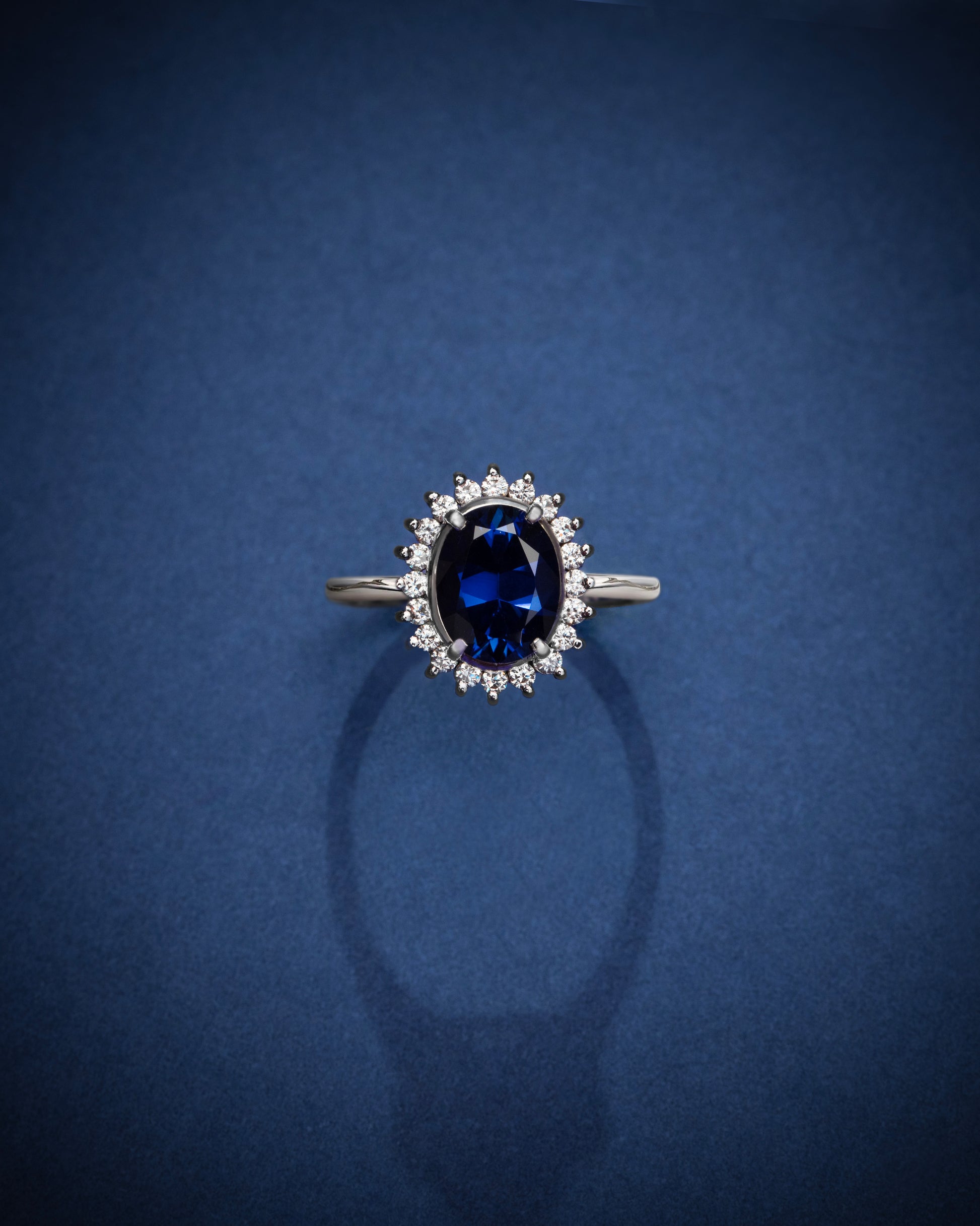 The original masterpiece that began it all, featuring a magnificent Sri Lankan blue sapphire encircled by brilliant diamonds. Crafted in 18k white gold, this iconic ring embodies timeless royal elegance that can never be overlooked.